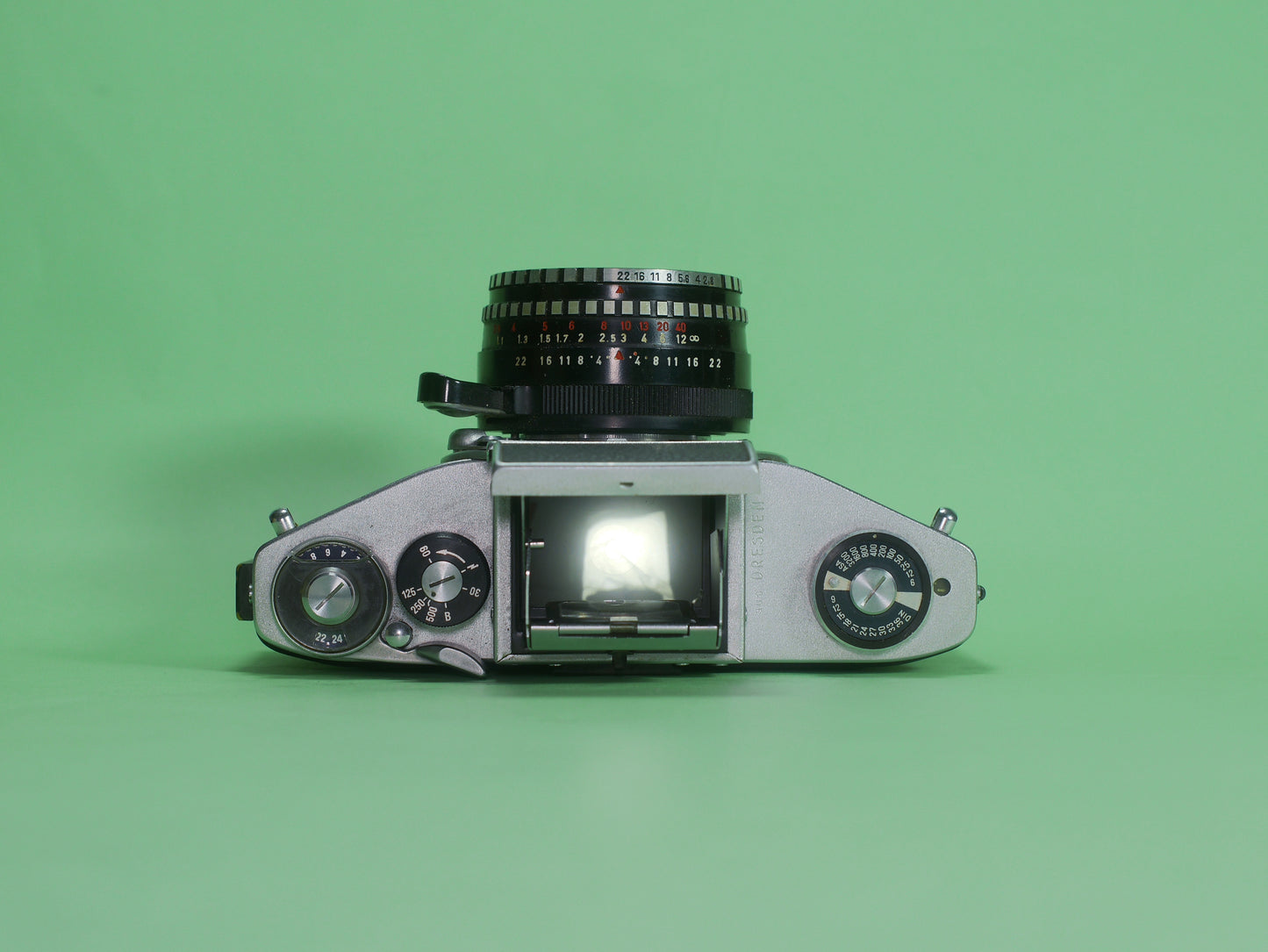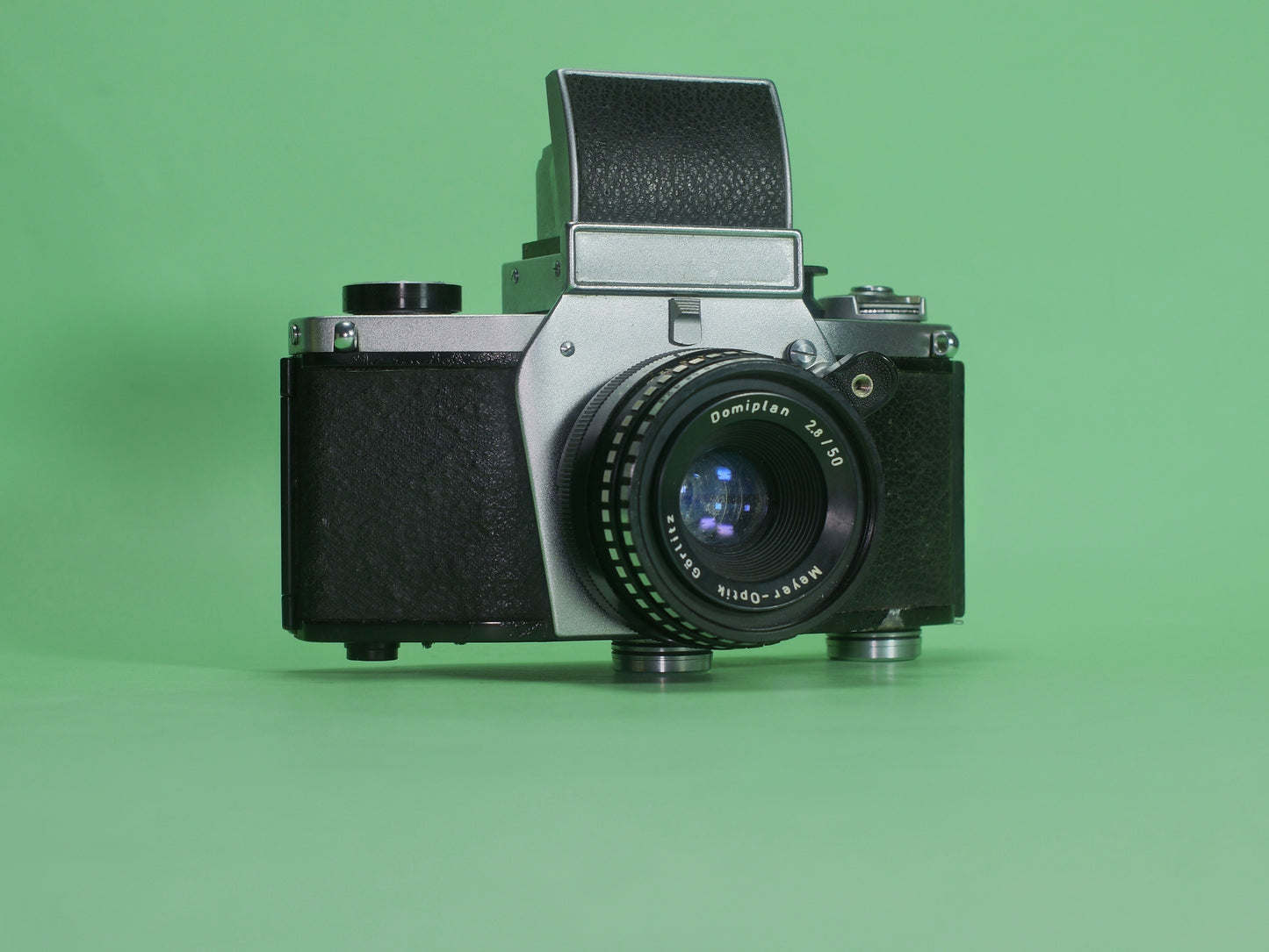 Cet Exacta est livré avec un objectif Meyer Optics Domiplan 50mm f2..8. C'est une bonne optique, très versatile et relativement lumineuse pour son âge. C'est un objectif intéressant pour son rendu chromatique, son piqué et son poids léger.